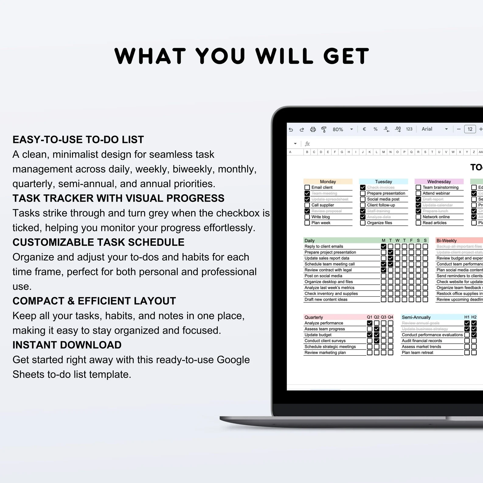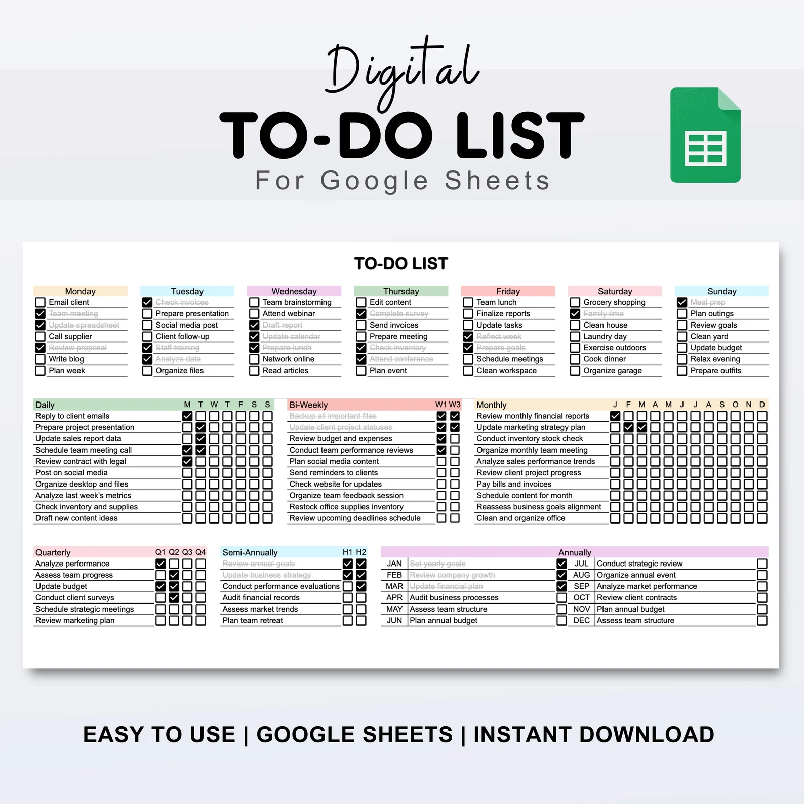 Digital Todo List Template For Google Sheets To-do List Spreadsheet For Daily Weekly Monthly Annual Task Tracker Instant Download