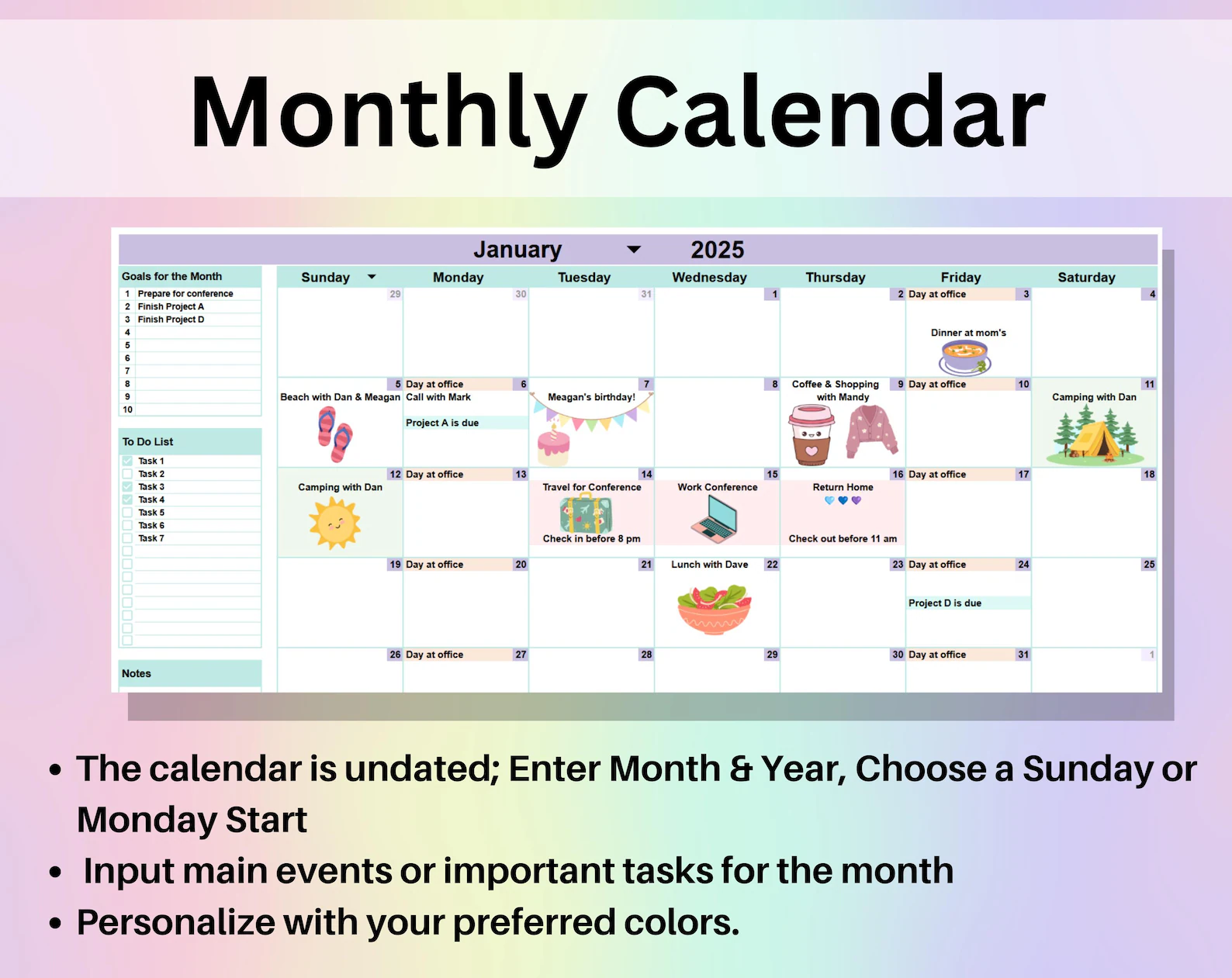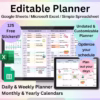 Editable Planner Google Sheets Excel Digital Planner Spreadsheet Daily Weekly Agenda Monthly Yearly Calendar Digital Daily Schedule Template